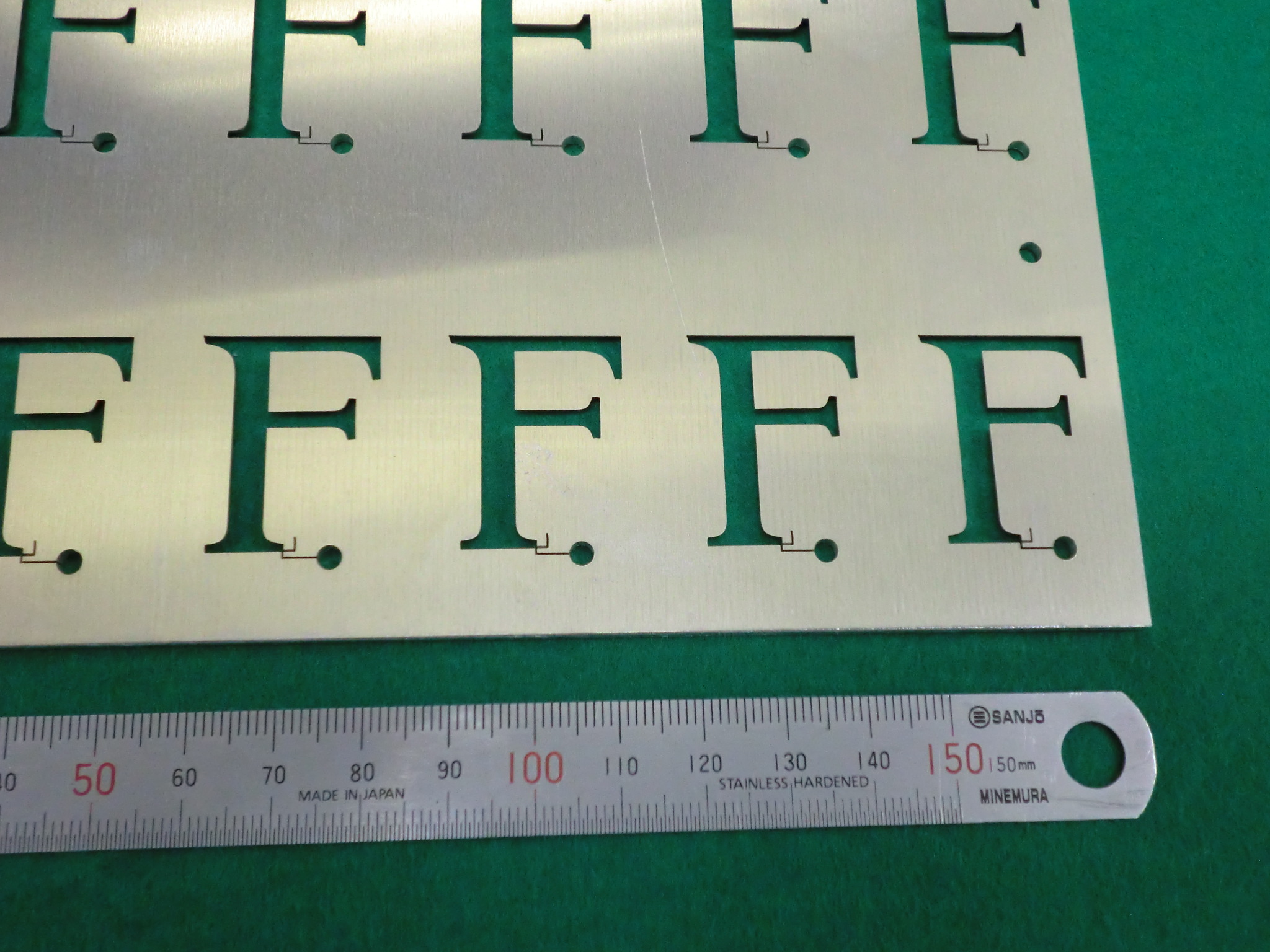 アルミをにアルファベット形状にワイヤーカットにて切断